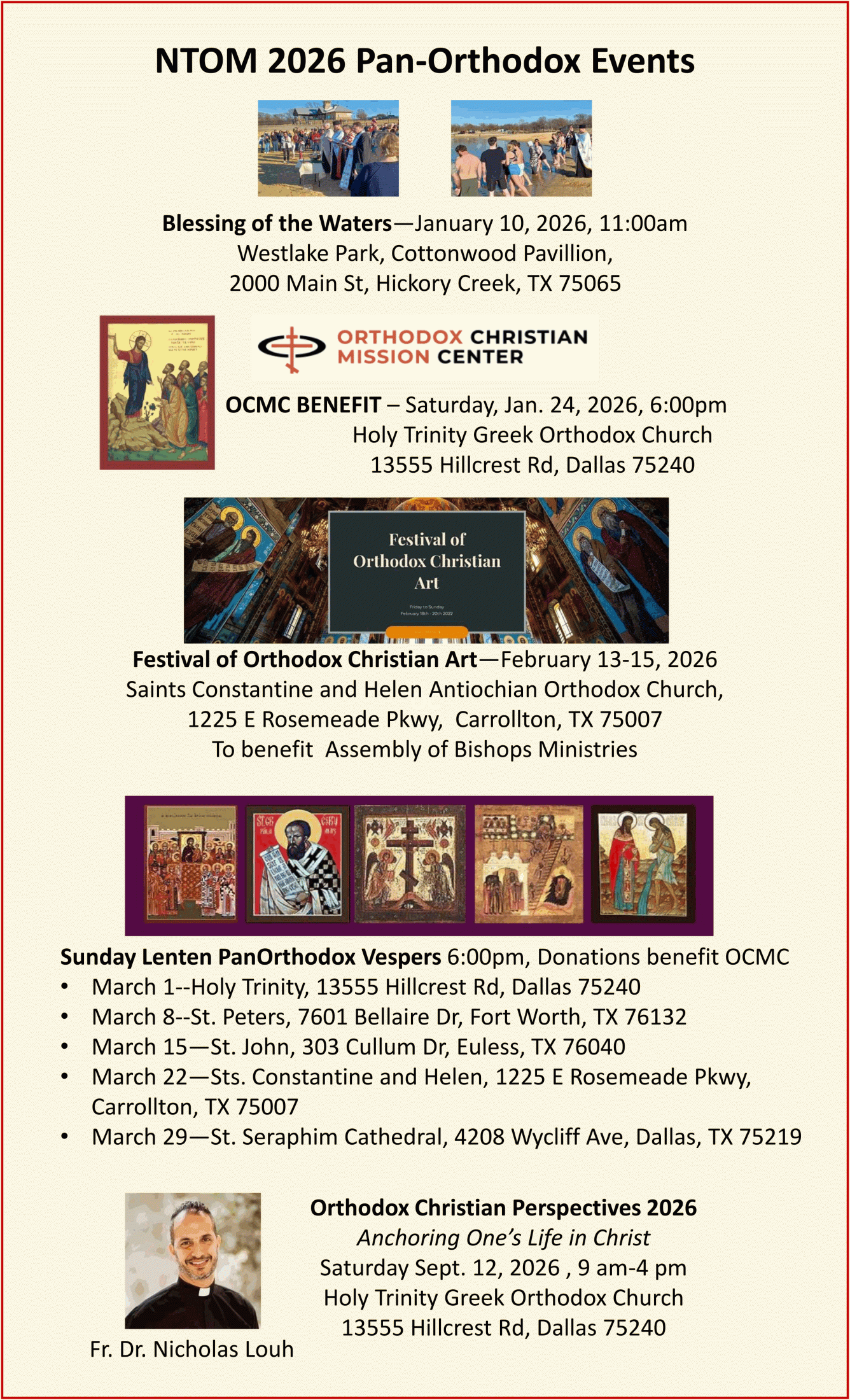 Saint Seraphim Orthodox Cathedral in Dallas hosted the 4th Pan-Orthodox Vespers of 2024. His Grace, Bishop Gerasim of Fort Worth and Father Chris Rowe from OCMC addressed those present. Read more »